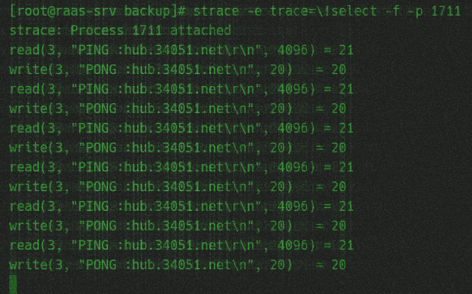 - strace跟踪线程发现不断测试hub.34051.net的地址,同时印证了最初的抓包记录